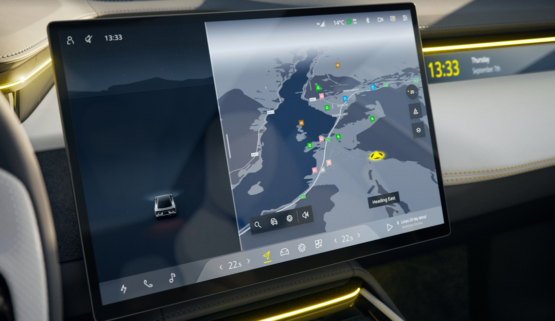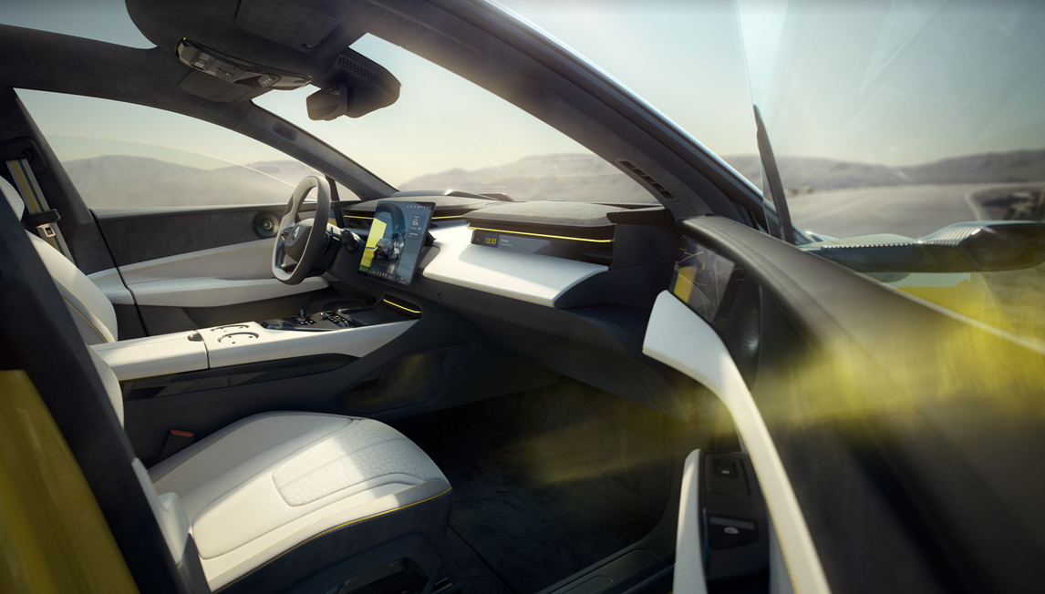 - 대시보드와 외장 곳곳에 지속 가능한 소재를 사용했으며, 디지털 미러 및 LiDAR, 55인치 AR 헤드업 디스플레이 등 첨단 장비로 미래형 GT의 면모를 구현했습니다. 실내에는 의류 폐기물에서 추출한 친환경 원사로 만든 트리밍과 KEF 3D 사운드 시스템 등이 적용되었습니다.