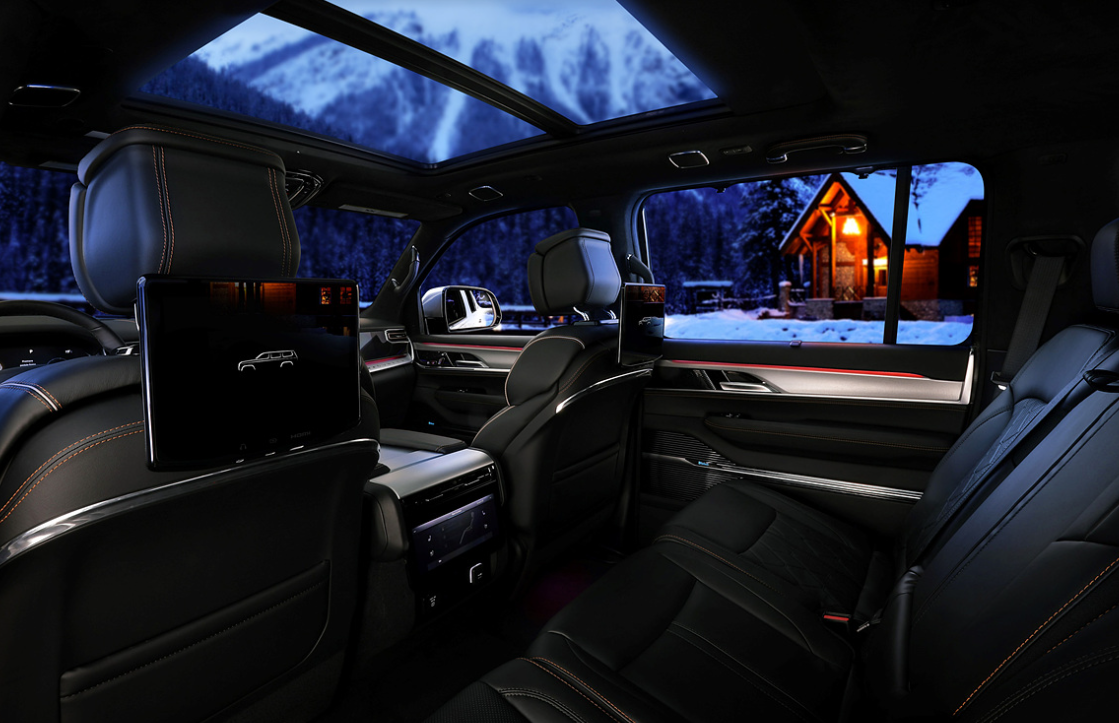 | 확장형 전동화 옵션 (EREV / 하이브리드) | 새로운 확장형 전기 파워트레인(EREV) 옵션이 그랜드 왜고니어 라인업에 추가됨. 92 kWh 배터리 + 3.6ℓ V6 발전기 조합으로 ≒ 647 hp 수준 출력 가능하다는 발표 있음. |